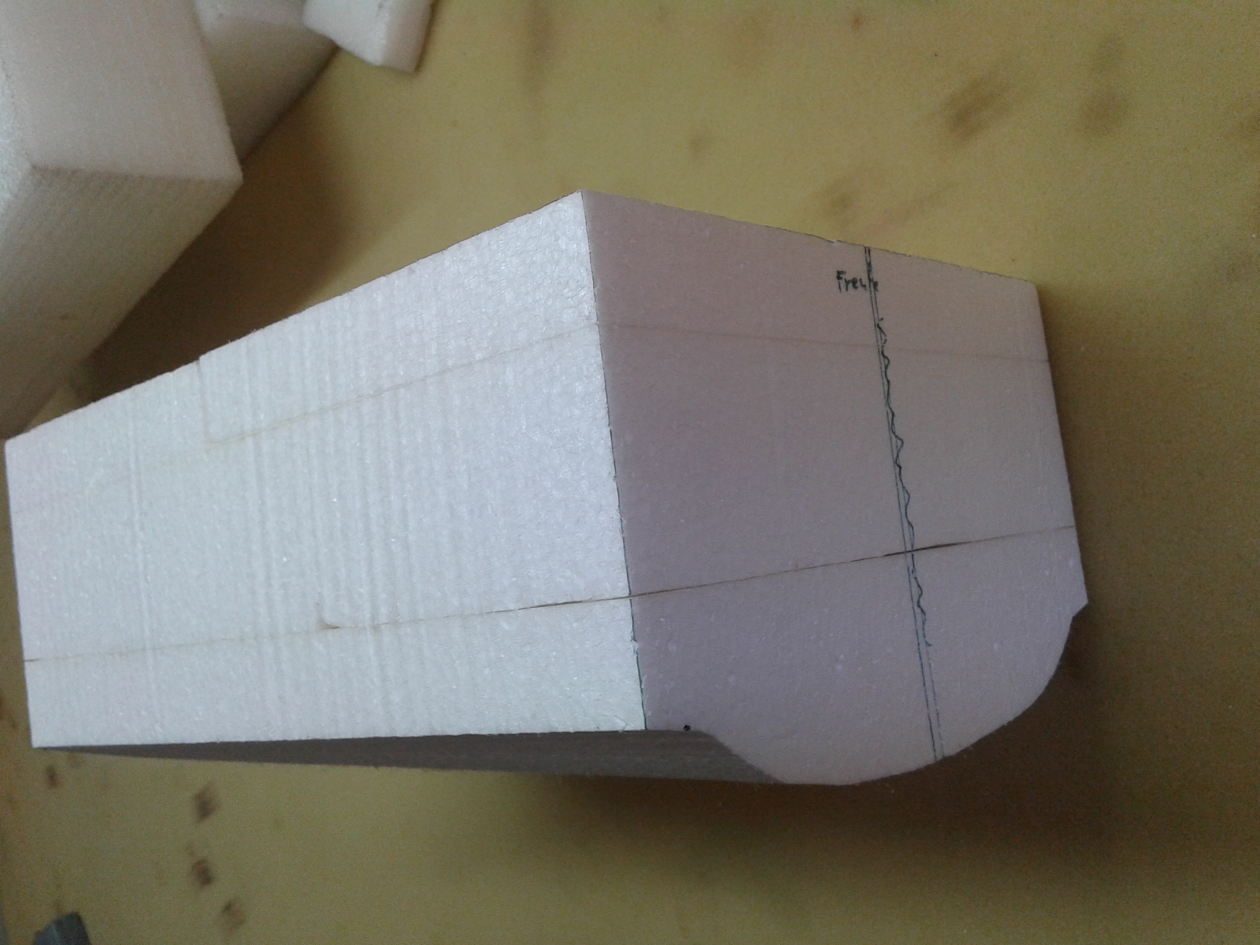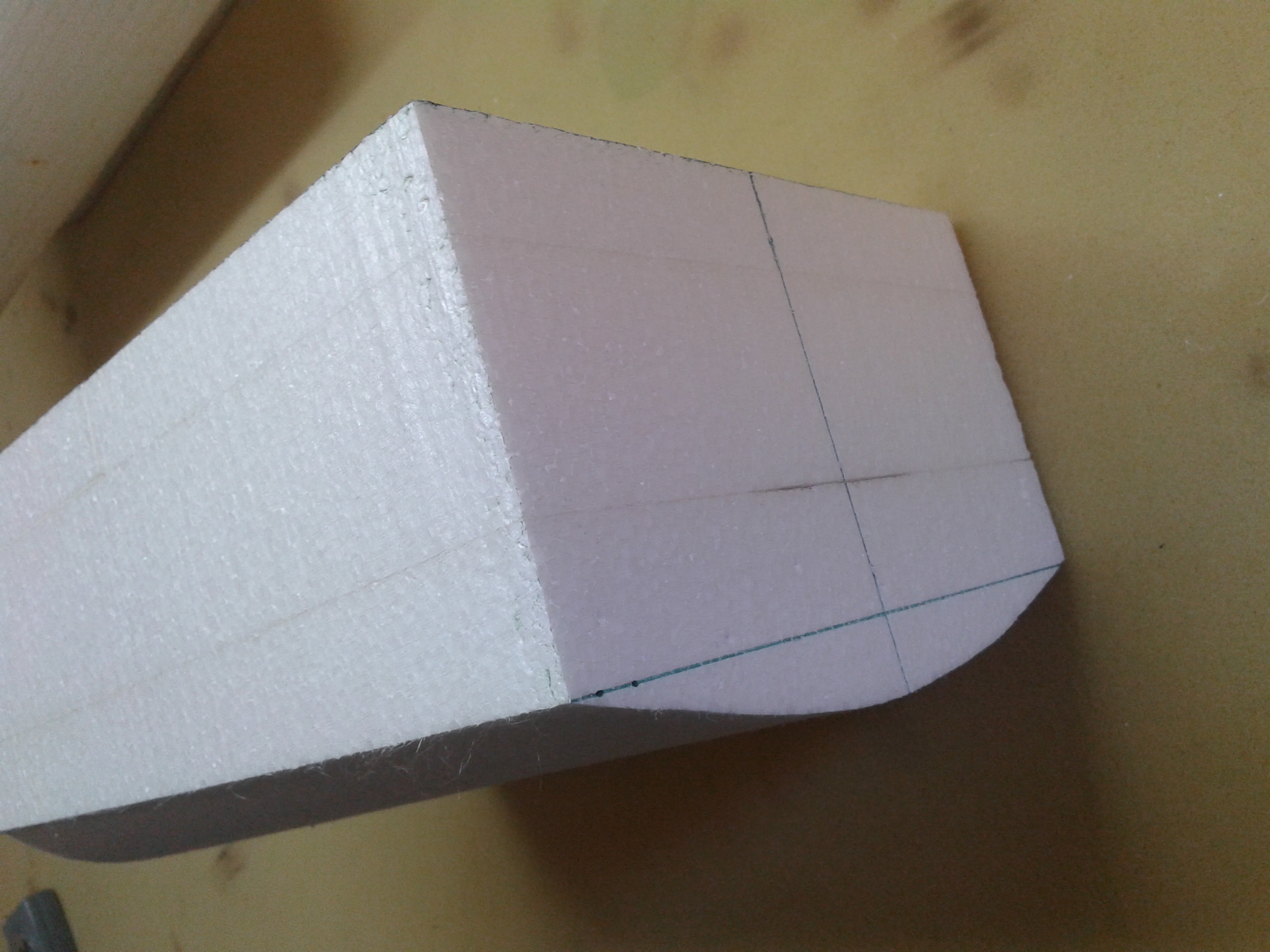 Yo, comienzo por hacer un molde de corcho blanco y me auxilio de un arco con una cuerda de piano al que le conecto una batería 4S Lipo.