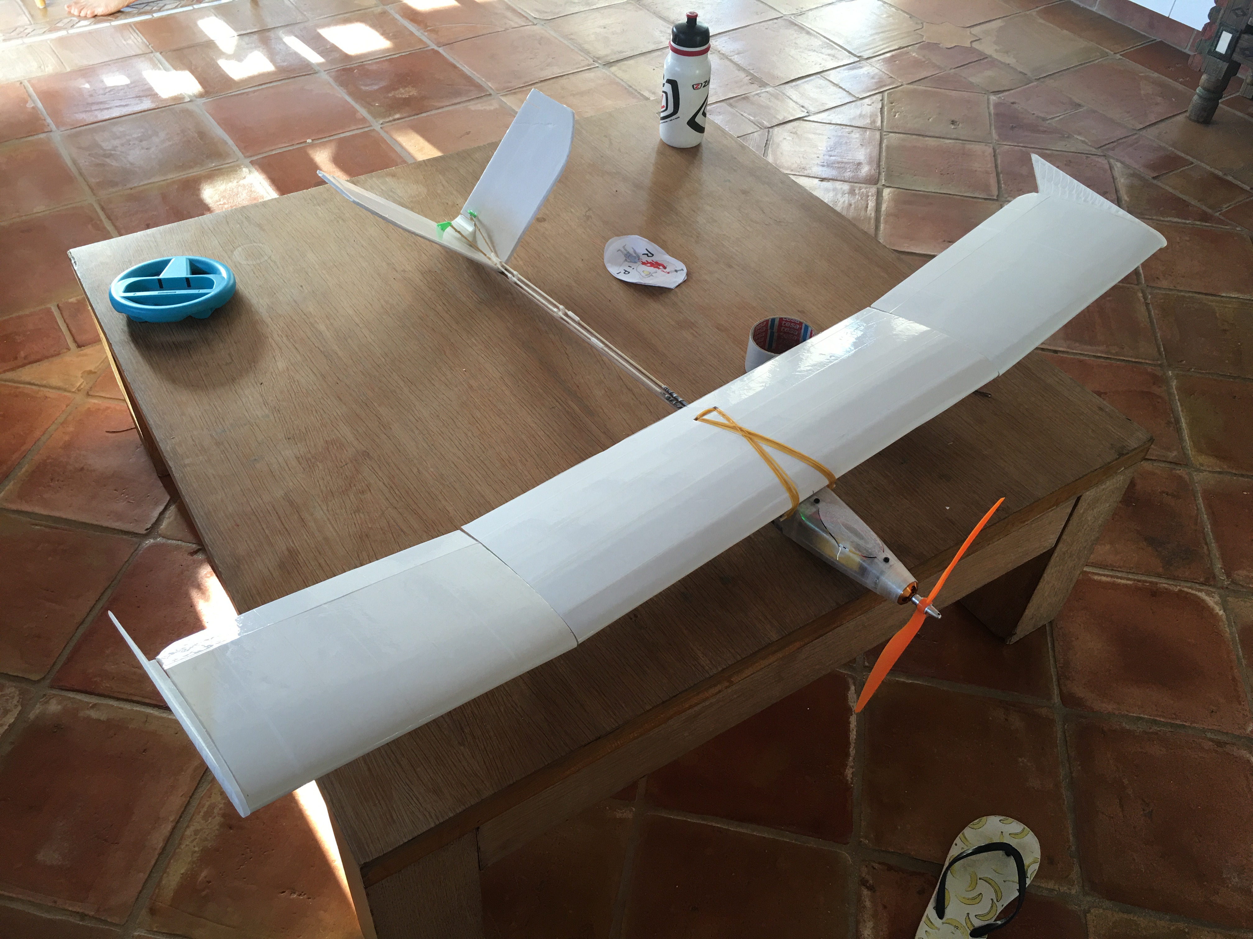 El avion esta hecho de foamboard las alas, con costillas impresas en 3d para que el airfoil este bien hecho.