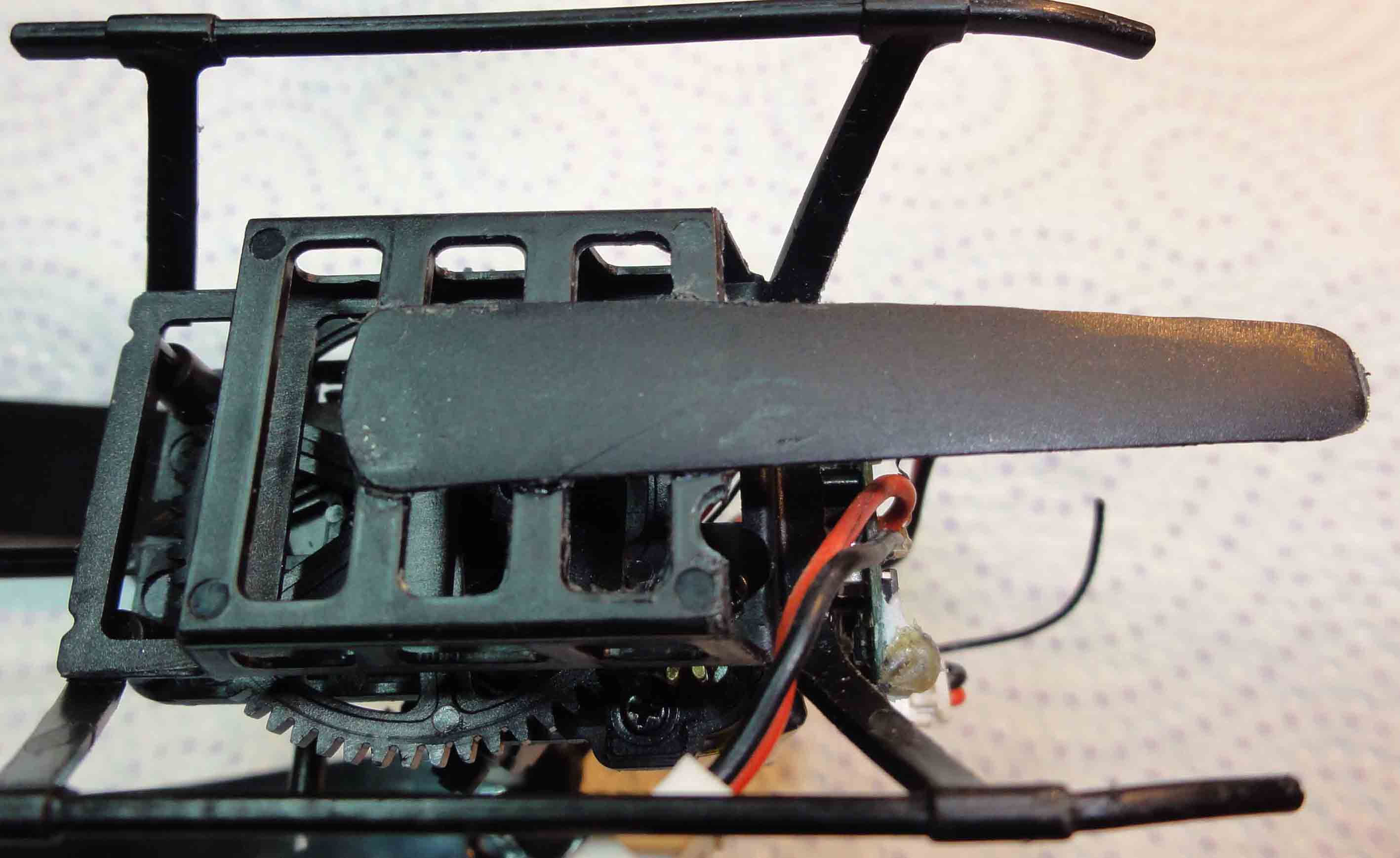 "a mi me paso eso despues de intentar una "autorrotacion" contra la mesita del comedor desde casi dos metros de altura, se me salio el cojinete del plato ciclico y la corona se desplazo un milimetro hacia abajo. No me di cuenta y claro motor a tope y no levantaba porque habia perdido paso. Fue apretar un poco el plato ciclico para meter el cojnete y un poco la corona y ale, a volar."