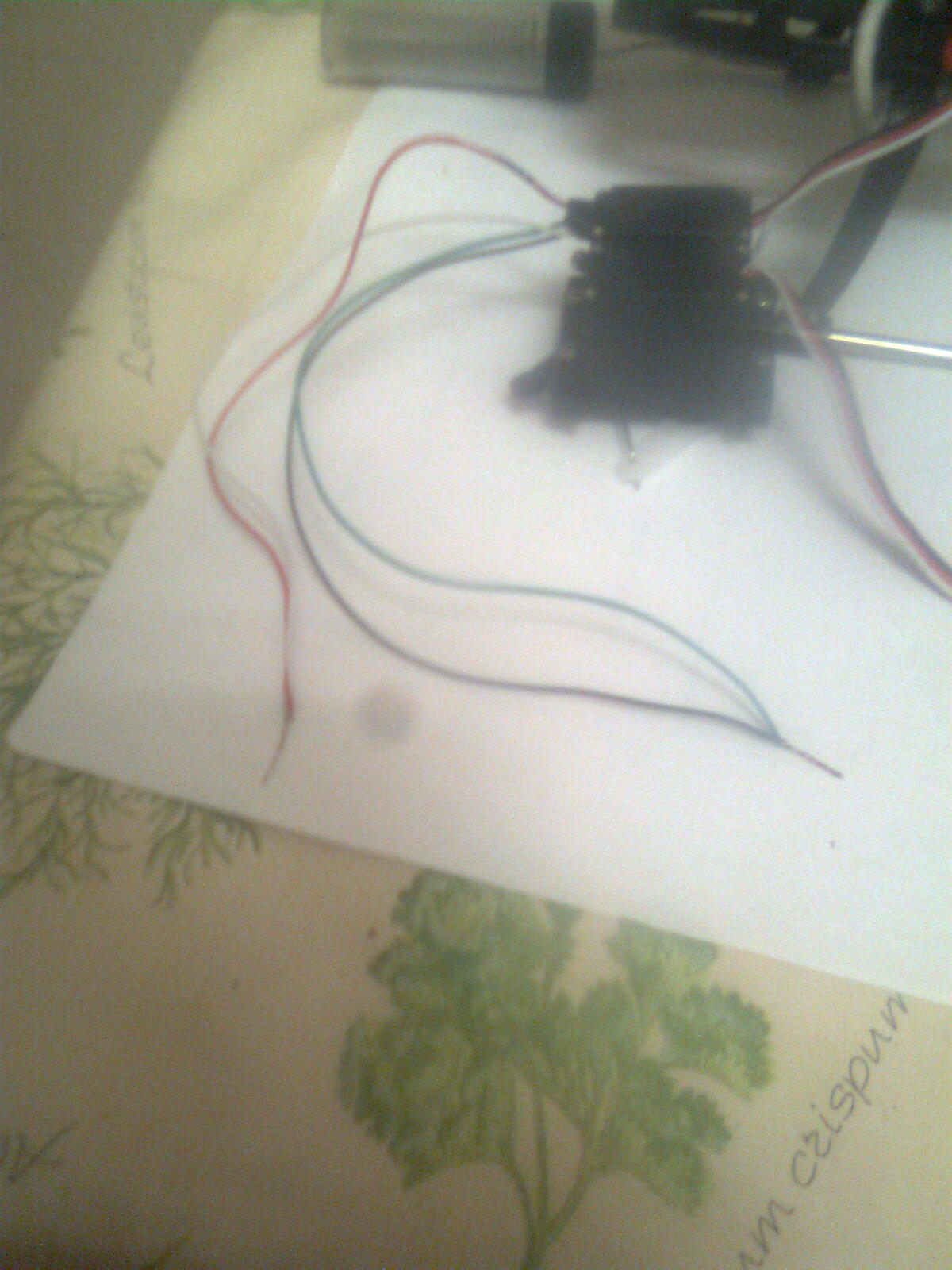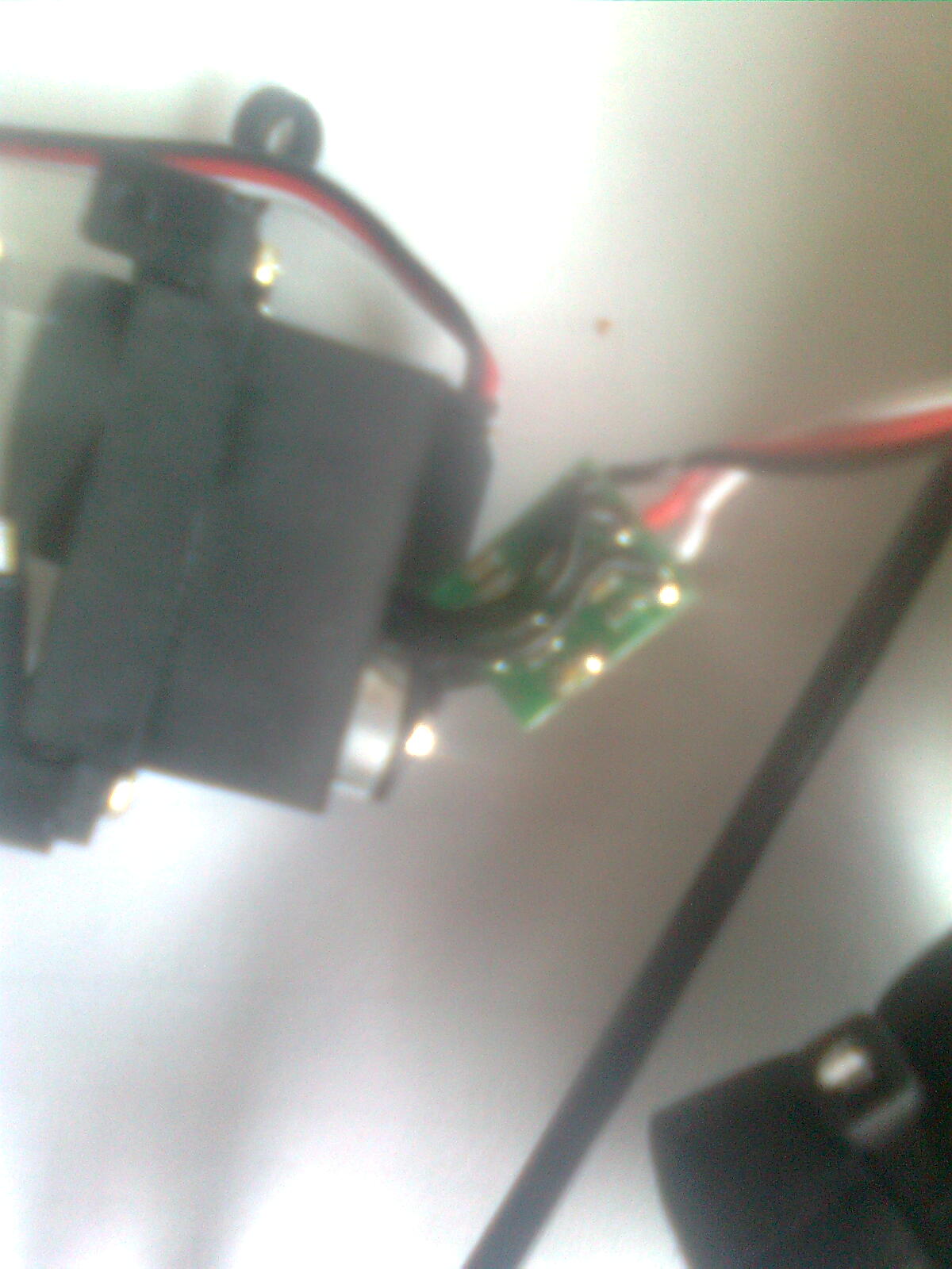 la 1ª se ven los tre cables quitando la tapa de arriba y lebantando la placa del chip.los tre cables son los que van al potenciometro del servo que es el que recuerda la posicion y los otros 2 son los que van al motor que mueve el servo.