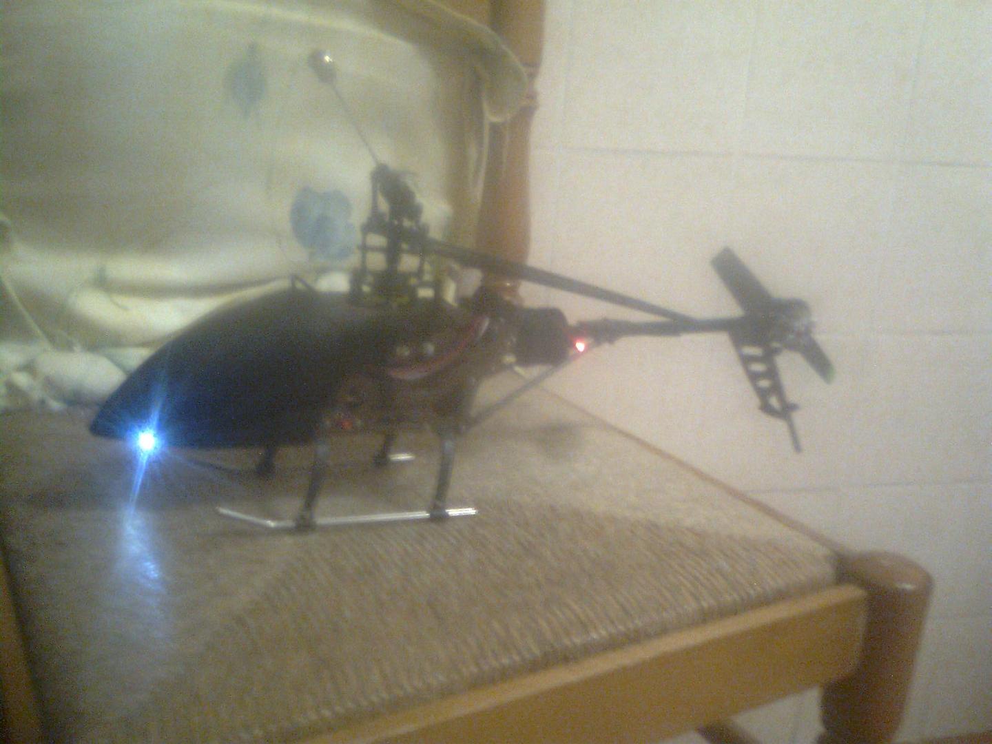 mi heli con luz adelante y atrás.lo he pintado de negro pues me gusta mas.el verde y amarillo es ......