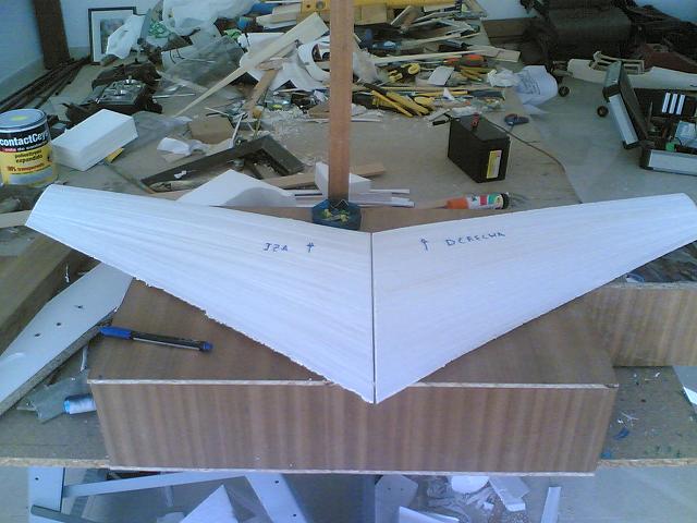 Bueno pues parece que mas o menos al final salieron mis primeras alas en foam :D , no han quedado todo lo bien que me hubiese gustado pero bueno :lol: , dicen que cortando huevos se aprende a capar :shock: