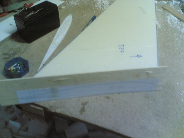 Con la forma del ala tira dos lineas resta asta que se unan ,en ese punto pones una chapita con un corte en uve en esa chapita descansa un estremo del arco de corte y del otro estremo lo colocamos en la plantilla y hacemos el corte y el hilo de ni-crom sale por un igual en toda la linea del borde de ataque o borde de fuga segun como empecemos el corte, la plantilla les dejo rabo por los dos lados asi al entrar y salir el hilo lo hace sin estropear el ala