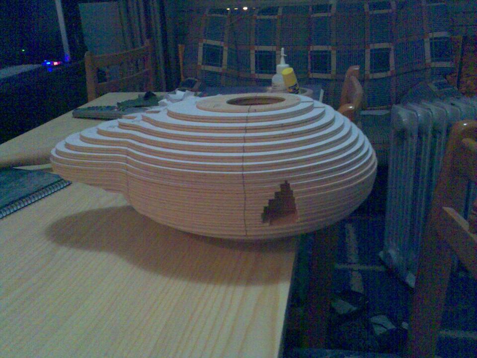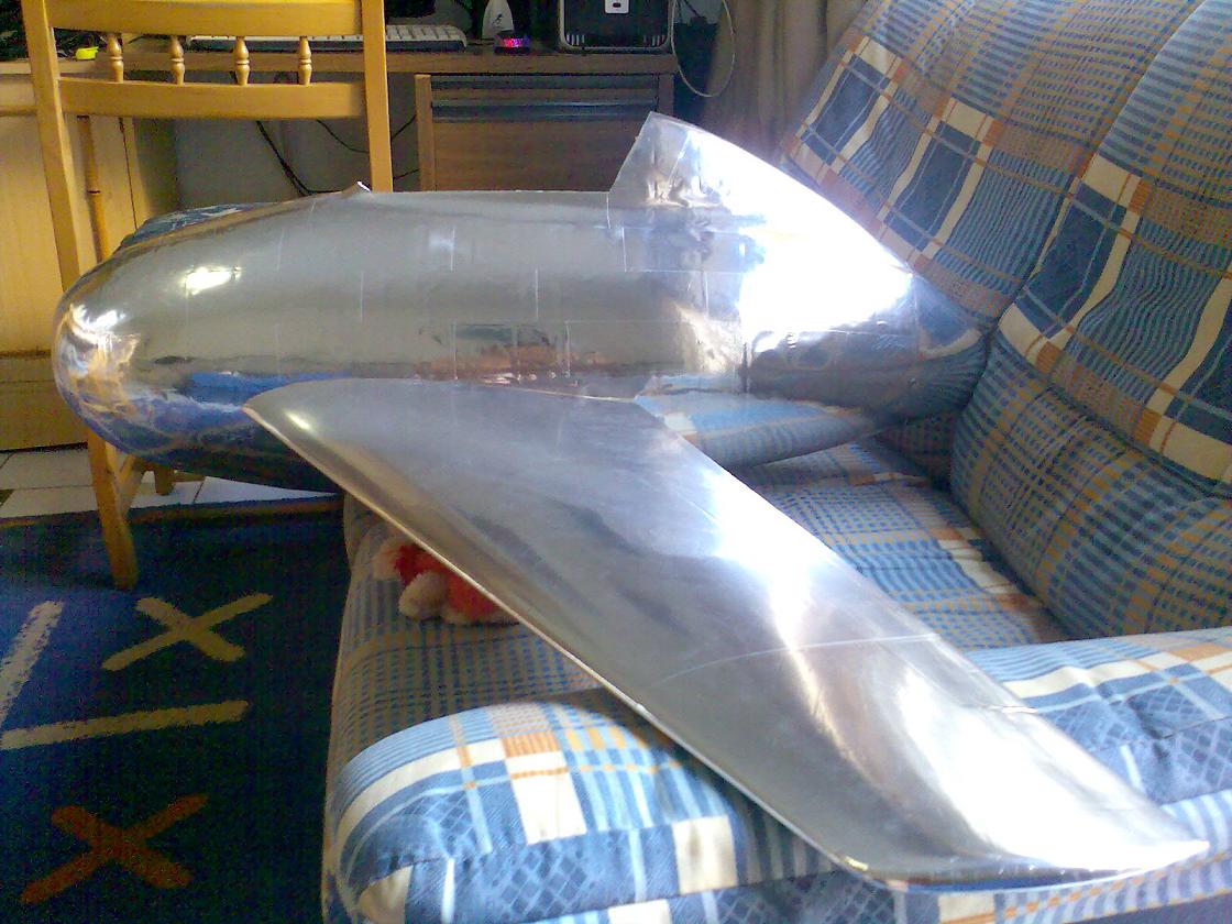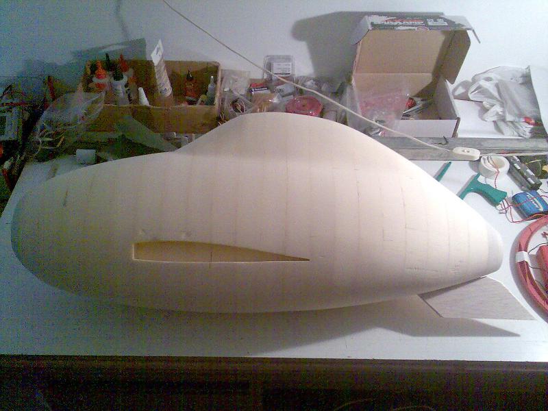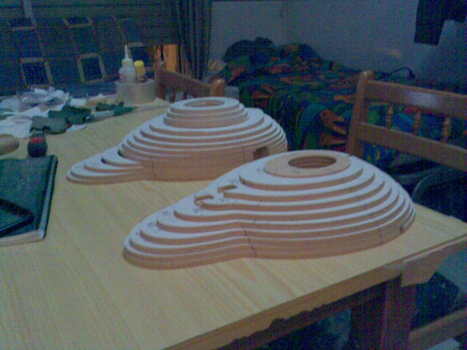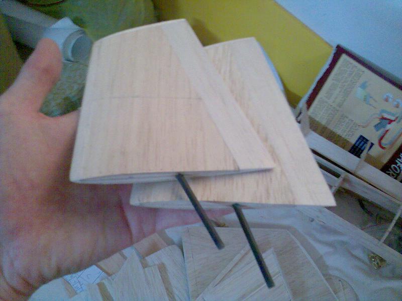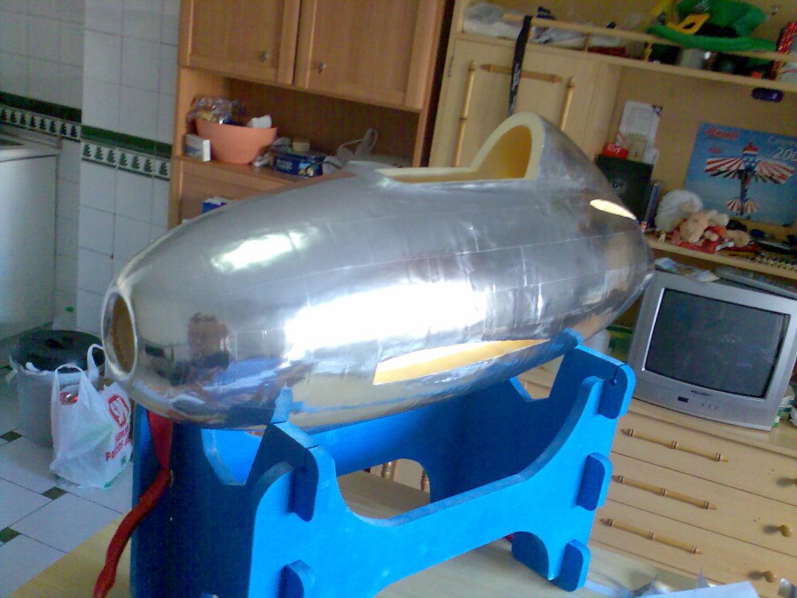Eso en cuanto al real, en cuanto al rc, pues la verdad es que gran medida de culpa la tiene mi estimado amigo Juanpe (Juan Pedro Guirao Gil) quien me levantó el interés por el vuelo PSS, así que no se me ocurrió nada mejor que construirme este como modelo PSS, no hace falta decirme que estoy loco para construirme precisamente este modelo para PSS, más que nada me gusta el modelo y bueno quería probar algo nuevo. Así que como de costumbre acudimos a nuestra querida pagina de airwar, y con el triptico pues hacemos el plano, autocad, horas, bla bla y nos ponemos manos a la obra. La idea es desde luego hacerlo ligero, claro esta como PSS, el resultado final ya veremos. El fuselaje está hecho con planchas de foam de 4cm, para todas ellas diseñe las plantillas que luego recorte con un arco de corte. Luego las pegué todas juntas y ahora me falta enfibrar y tal (sí, por darle algo de más rigidez, ahora mismo tal cual no me convence mucho). La timonería, que no es poca, son 8 piezas en total, esta hecha en balsa perfilada, excepto la vertical inferior que será de apoyo. Las alas, considerando mi falta de tiempo :S, se las encargue a Javi (Javier López), desde aquí le mando las gracias por su buen trabajo. Y nada más, unas fotos para ilustrar esto un poco:
