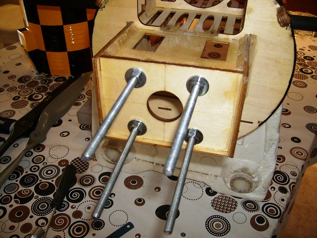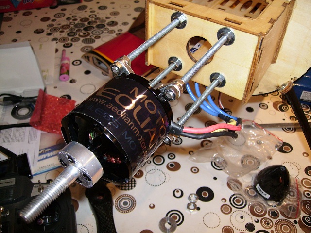 como el modelo no traía una bancada para la sujección del motor le puse unos espárragos de varilla roscada de métrico 6mm. El motor queda perfectamente y la ventaja que puedes dar las incidencias necesarias sin complicarte mucho la vida