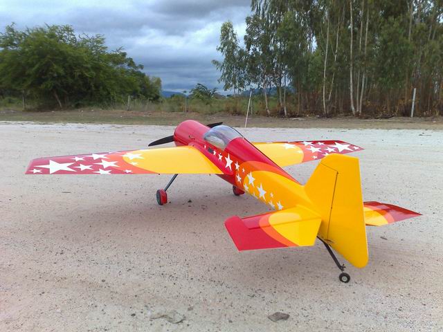 Este es el nuevo avión de Composite ARF para motor 50 cc, tiene una construccion similar al Extra de 2.12 mts, pero con una decoración mucho mas bonita, la verdad es que tiene muy buena pinta y por 650 € con impuestos incluidos.
