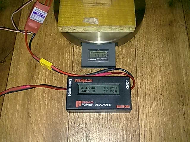 Ya pedire alguna 13x6,5 para ver que tal va con esa,ahora solo tengo la que es para motores glow que compre por equivocacion,de todas formas probe con ella para ver que resultados me daba y fueron unos 2200 gramos de empuje y 41 A.