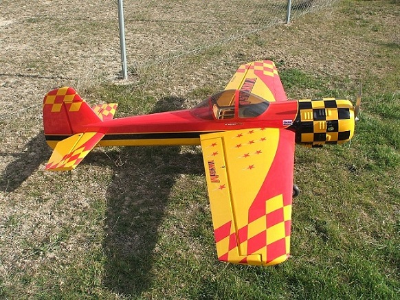 Hasta hoy no he podido probar el avión en vuelo y lo he hecho con lo anteriormente expuesto y, efectivamente, el vuelo ha ido bien haciendo trepadas de unos 50 m. pero claramente insuficiente para poder hacer algo de acrobacia con un poco de seguridad.