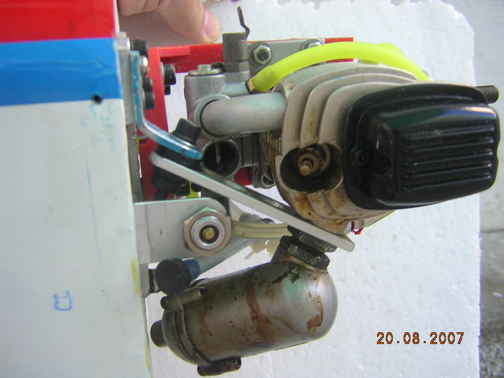 Te comento más. La pistonada es tan fuerte que he tenido miedo de que la bancada de plástico se rompiera y la amplitud de la vibración fuera mayor. Descarto la bancada metálica porque trasmitiria las vibraciones al avión. Como sabes en competición se suele añadir un apoyo adicional a la altura del rodamiento delantero, con ello se evitan amplitudes de vibración grandes que merman las prestaciones del motor.