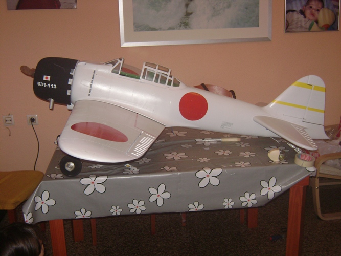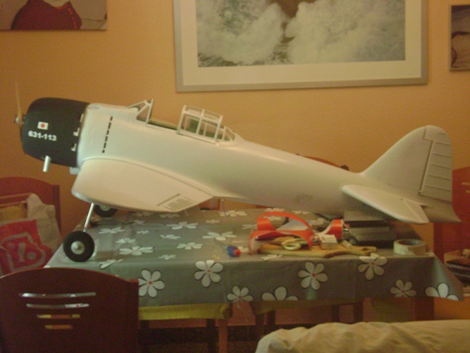 Hola flyer que tal amigo, he estado muy liado estas fiestas, lo del zero bueno te comento, el zero está terminado y listo para volar pero estoy un poco harto del motor que tiene puesto me está dando tela de guerra y problemas, no soy capaz de afinarlo para el supuesto estreno, y no pienso comprar otro a ese lo entiendo yo, tendré que quitarlo del avión y ponerlo en un banco de pruebas y no quitarlo de ahí hasta que este como las ruedas de mi coche jajaja. Gracias por lo del el libro flyer pero ya tengo el avión terminado y no creo que me haga mucha falta, si necesito información te lo pediré, ahi te pongo una foto.